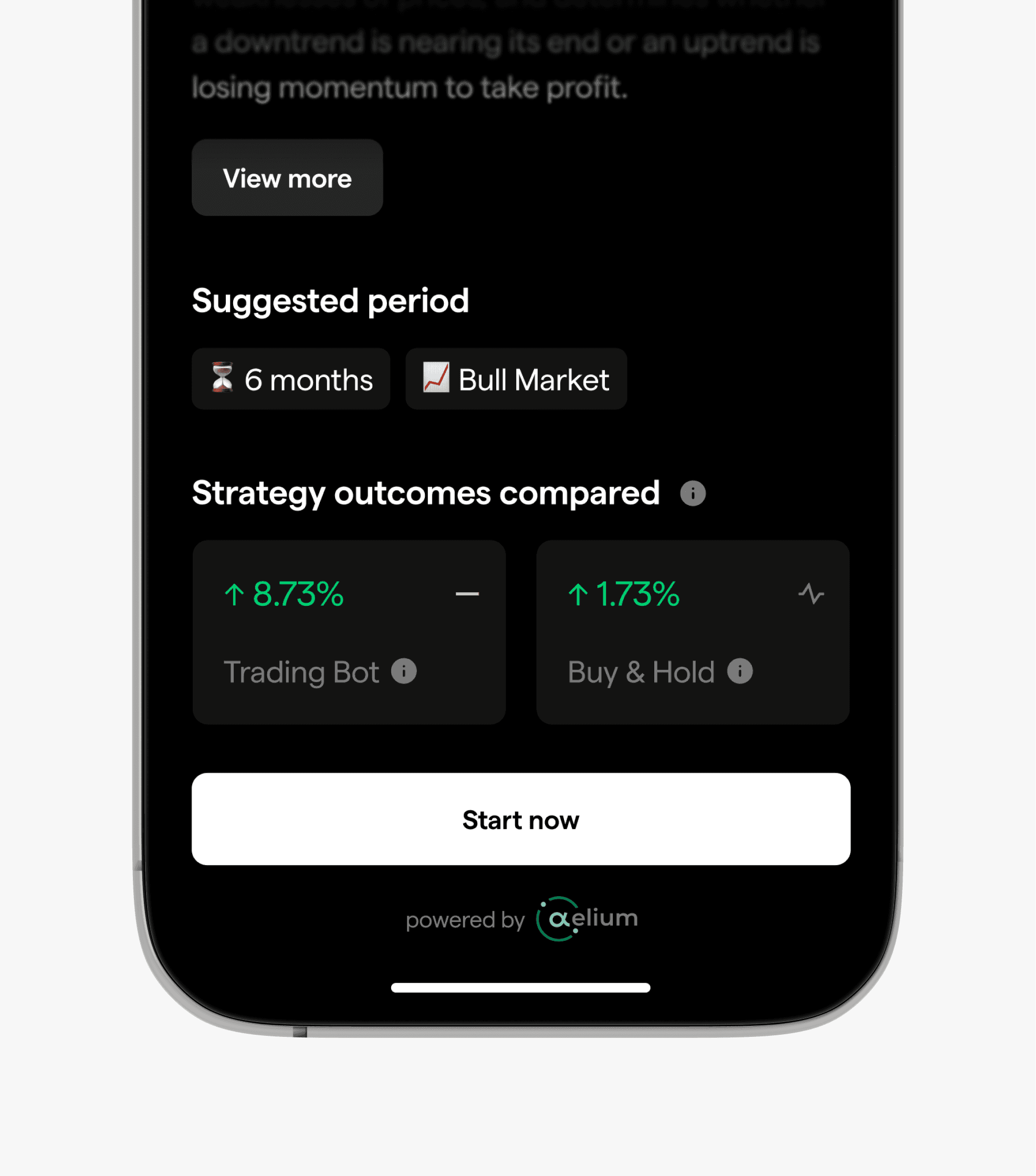 We translated complex strategies into clear, goal-oriented options (“Buy the dip,” “Range trade,” “Take profits”), always showing how a strategy works and when it applies. Progressive disclosure kept flows lightweight, one decision per screen. Copywriting was plain, human, and focused on outcomes, not jargon.